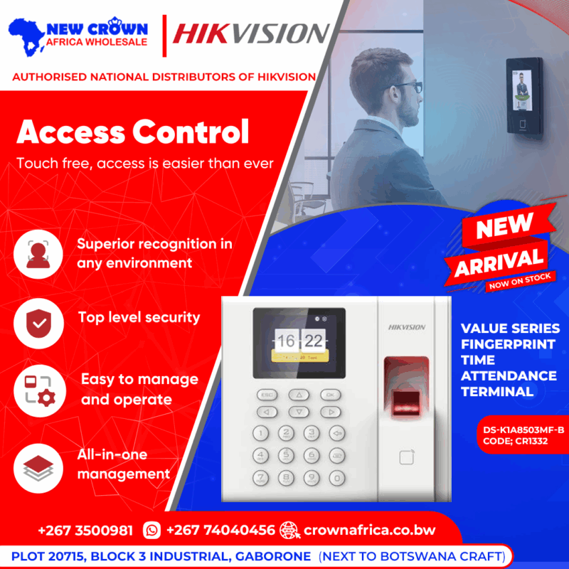 At Crown Enterprises T/A New Crown Africa, we are proud Authorized National Distributor for Hikvision in Botswana. crownafrica.co.bw This means we bring you the latest, industry-leading access control solutions — with local support, supply, and installation — tailored for homes, offices, institutions, and commercial properties across the country. What Is Access Control? Access control refers […]